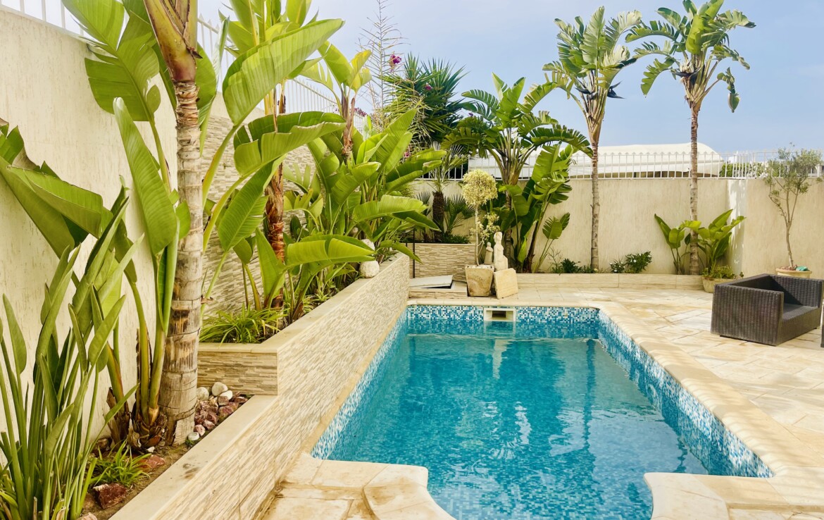 LA MARSA : A Vendre une très belle villa jumelée d’environ 200 m2 couverts, édifiée sur un Terrain de 225m2