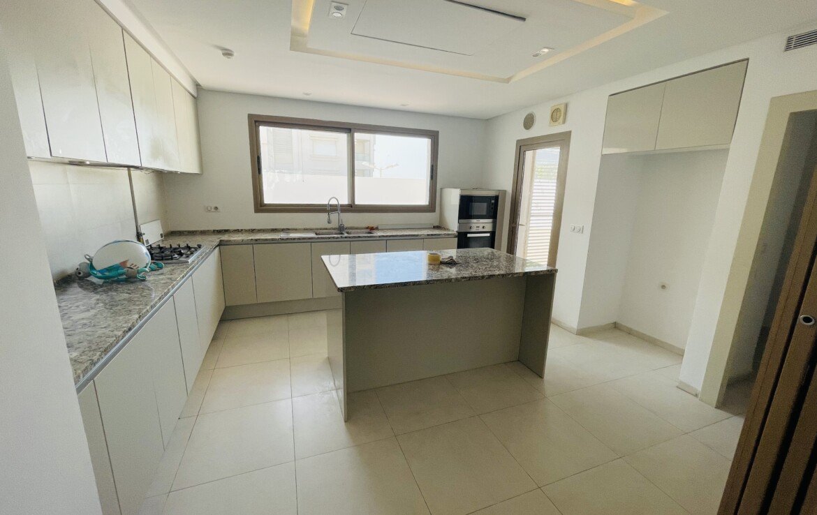 GAMMARTH : A Vendre un grand Appartement S+3 de haut standing d’environ 200 m2 couverts avec un Jardin de 180 m2.