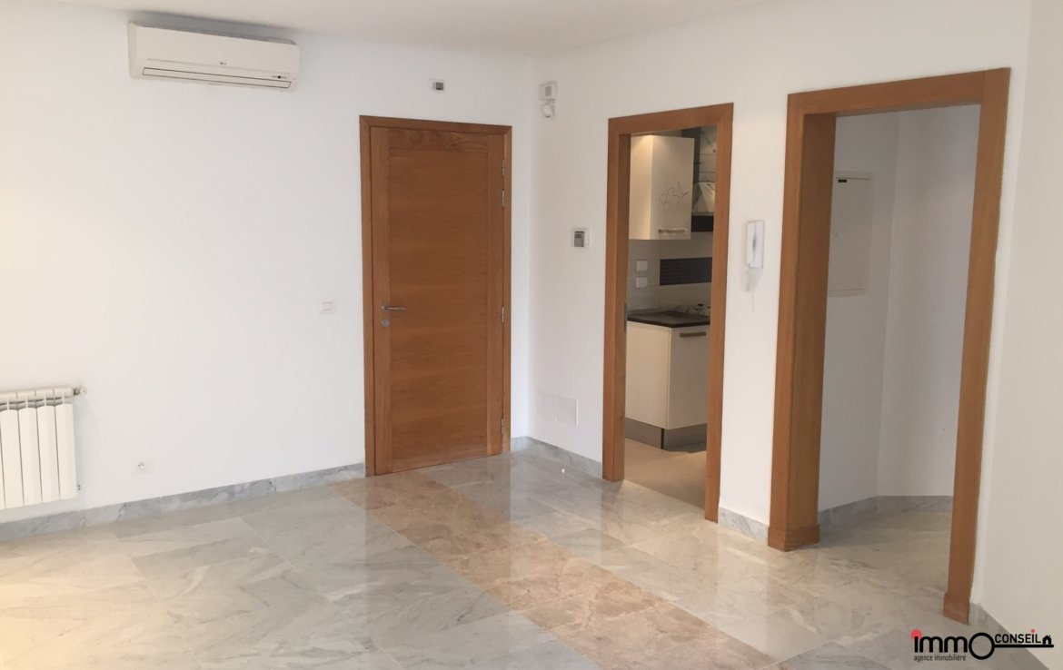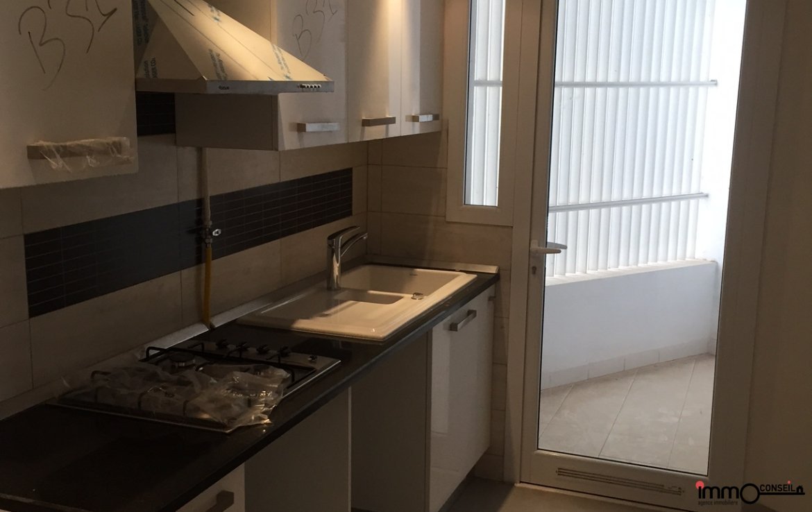 CENTRE URBAIN NORD : A LOUER Appartement S+1 de 77 m2 avec cuisine séparée. Loué avec place de parking. Neuf, n’a jamais été habité. Très Haut Standing, bel emplacement, à proximité de toutes les commodités.