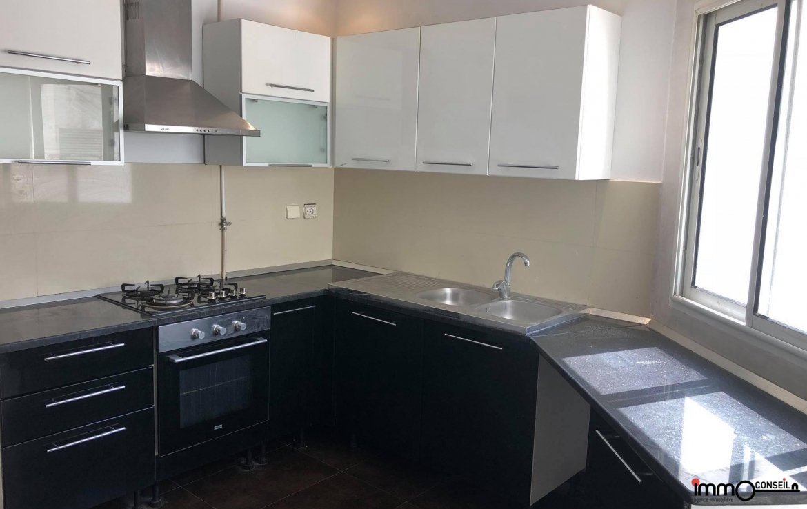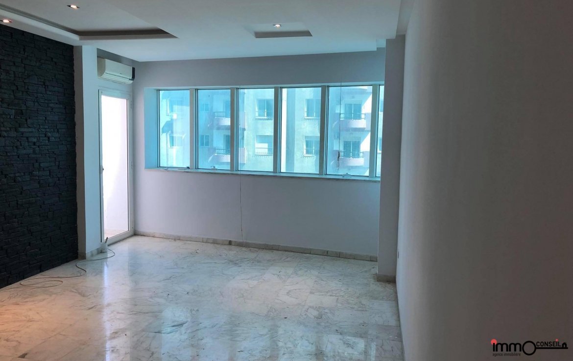 ENNASR : A Vendre Appartement S+3 composé d’un grand salon avec terrasse, de 3 Chambres à coucher, d’une cuisine équipée, d’une Sdb, d’une sde. Vendu avec une place de parking au sous-sol.