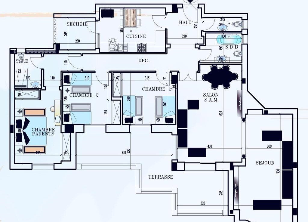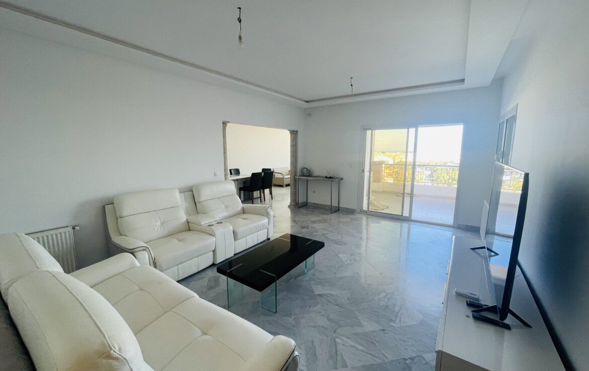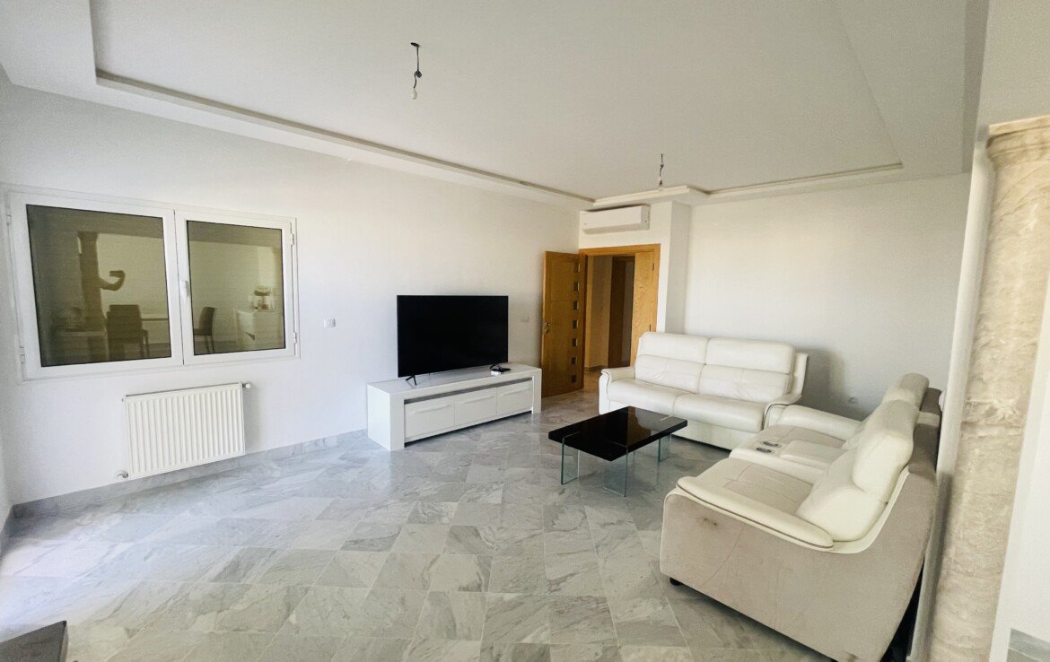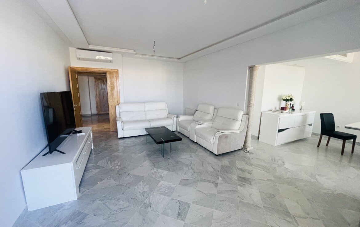 LAC 3 : A vendre un très bel appartement S+3 d’environ 190 m2 composé d’un Hall d’entrée, d’un Grand Salon – Salle à manger, d’un Séjour, d’une Suite Parentale, de 2 Chambres, d’une Cuisine équipée avec séchoir, d’une Sde et Wc.