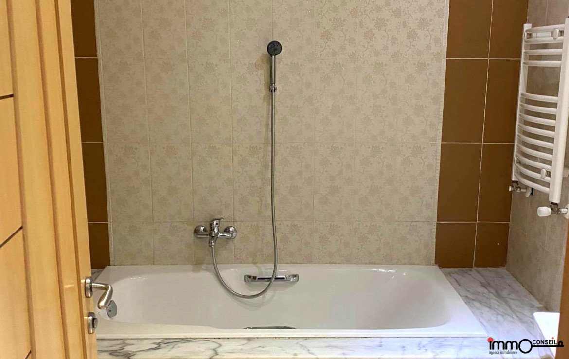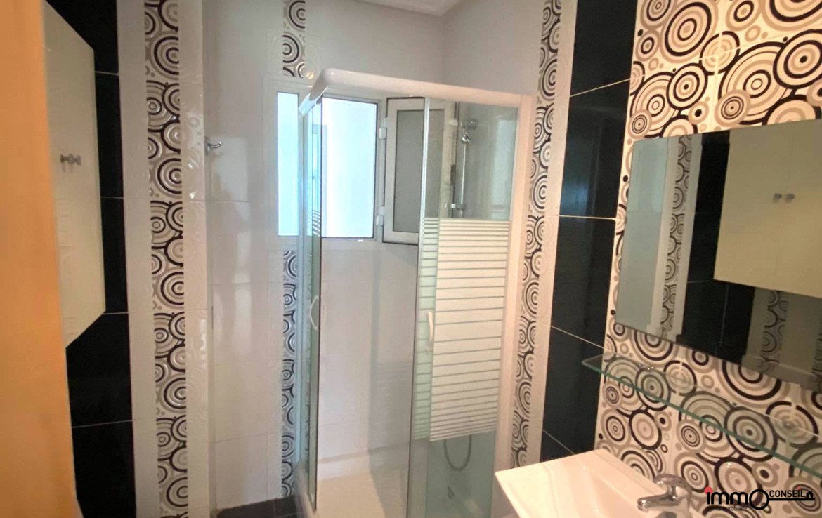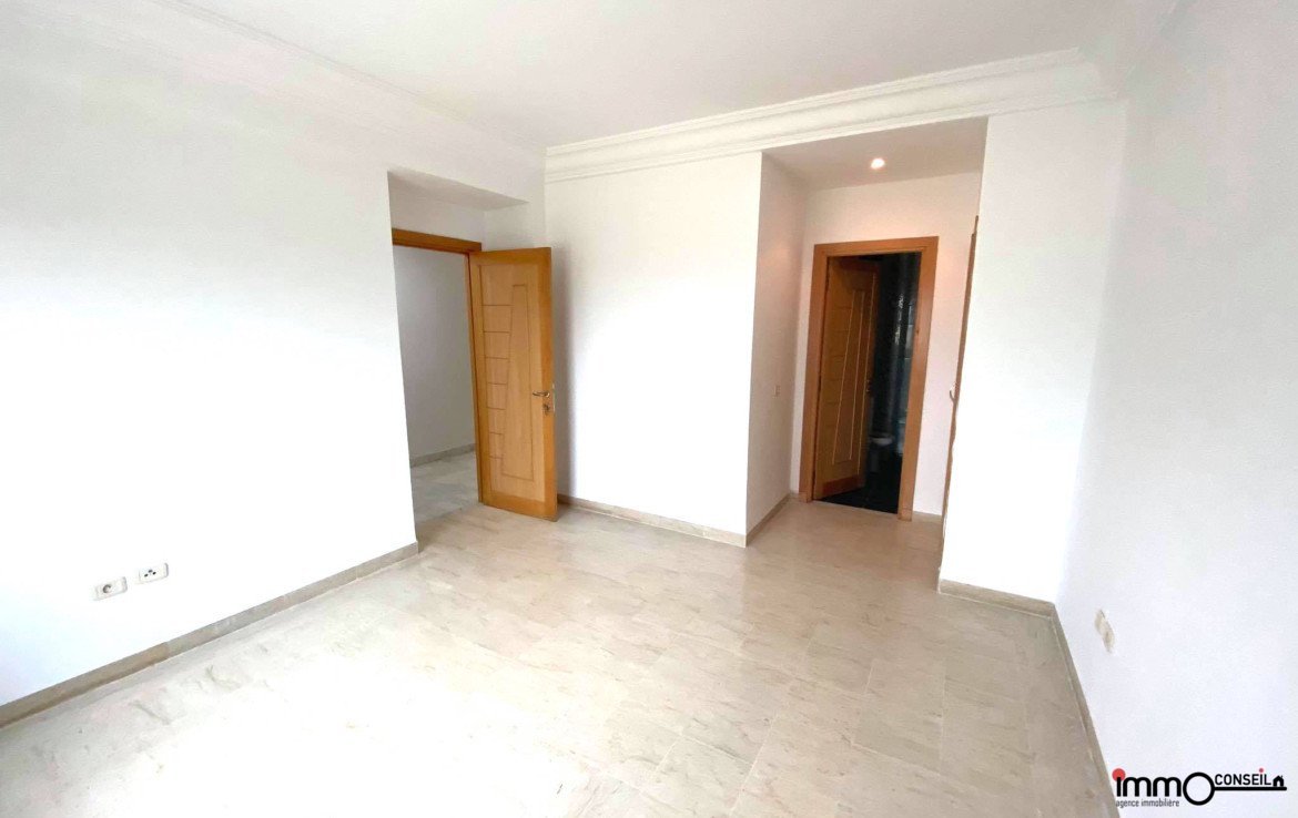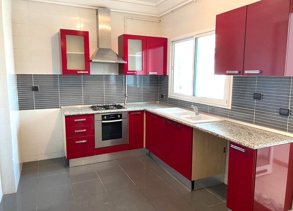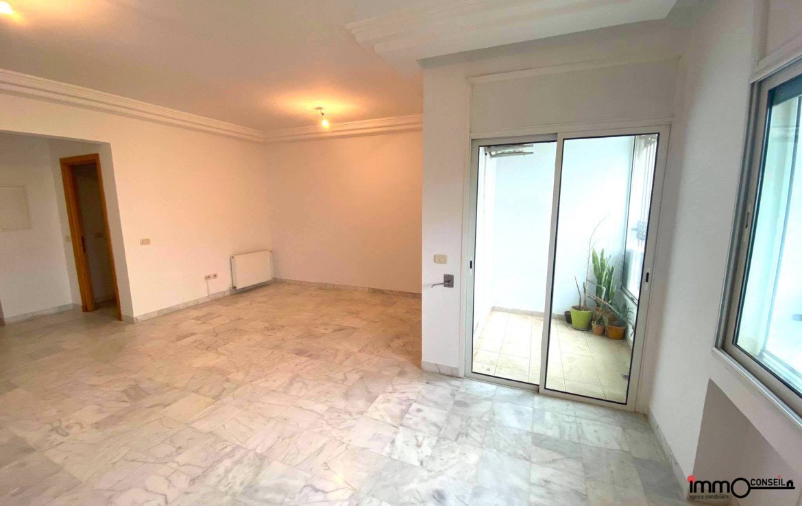 JARDINS D’EL MENZAH 2 : A Vendre un bel Appartement S+3 d’environ 150 m2 couverts (124 m2 nets) composé d’une Partie Jour avec un Hall d’entrée, un grand Salon avec une petite terrasse, une cuisine, un séchoir, une Sde.