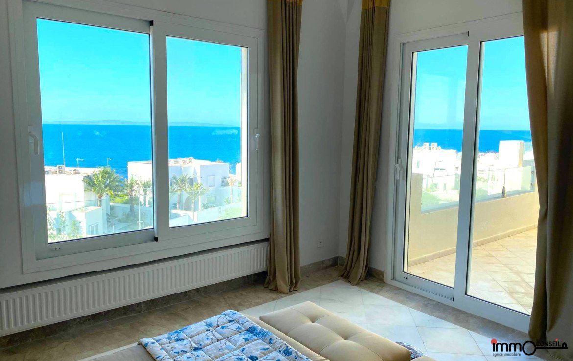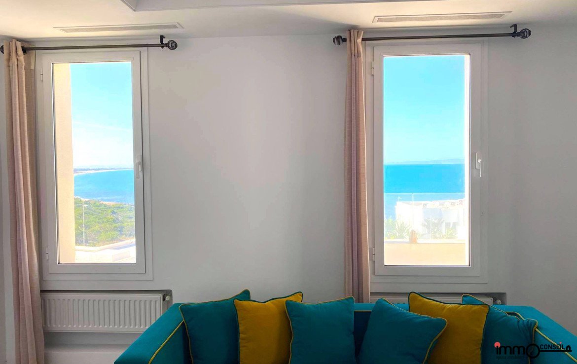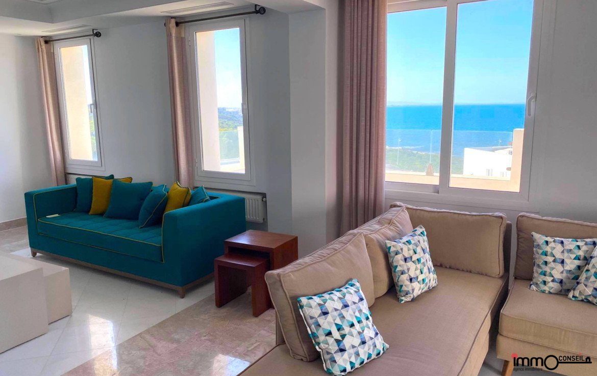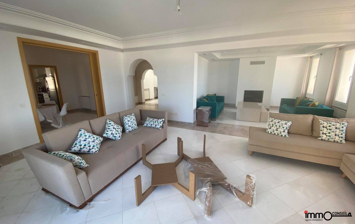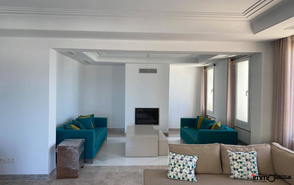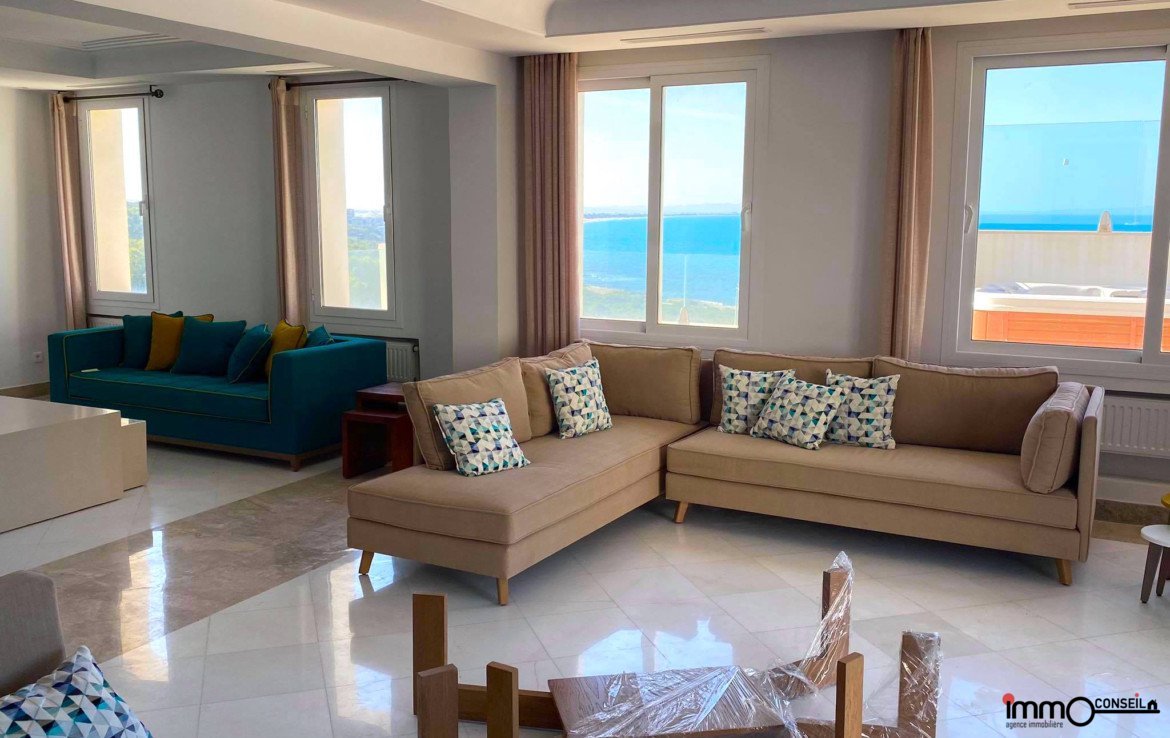 MARINA DE GAMMARTH : A Louer un très bel Appartement S+3 Meublé d’environ 300 m2 couverts avec une très grande Terrasse.