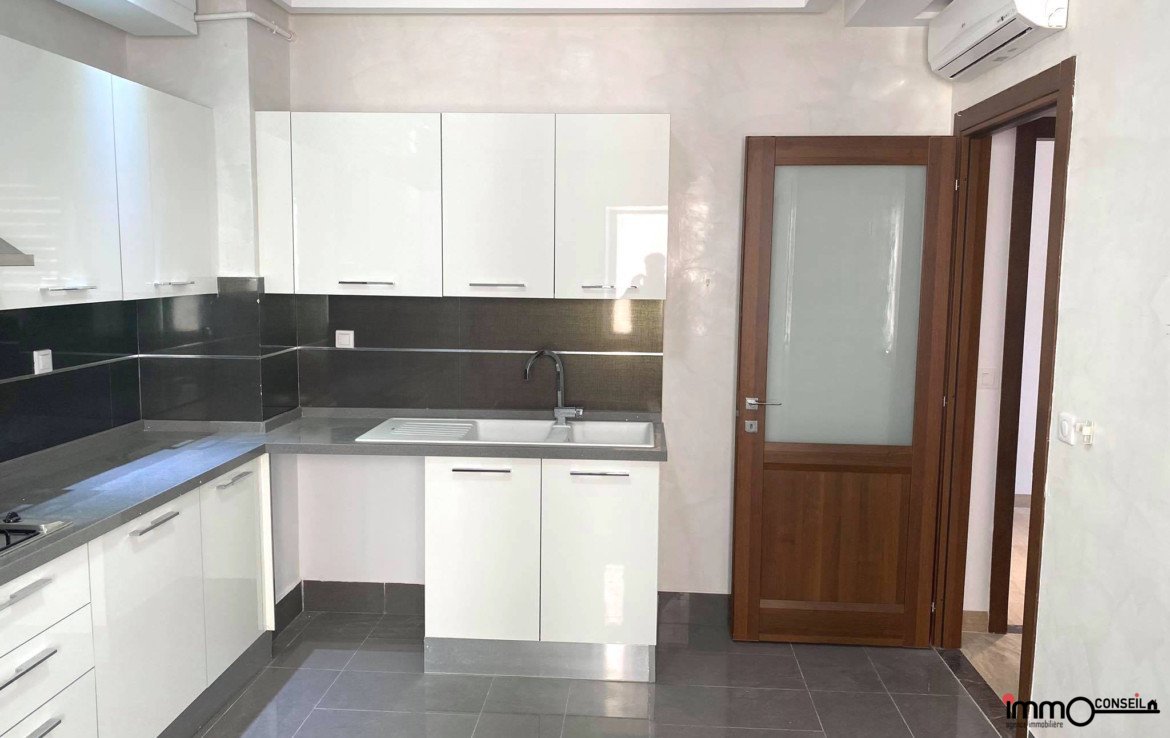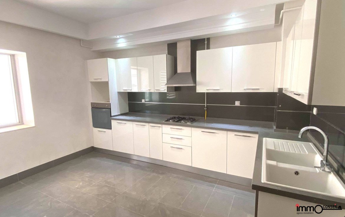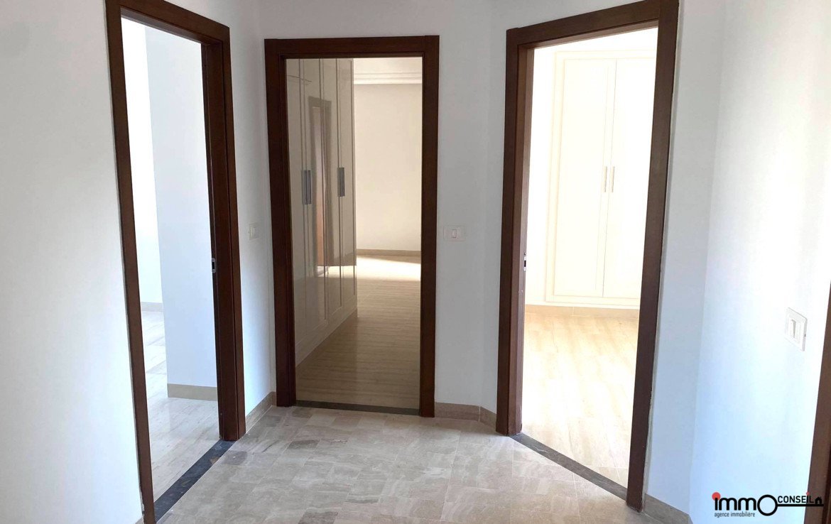 AIN ZAGHOUAN NORD : A Vendre un très bel Appartement S+4 Neuf d’environ 200 m2 couverts, composé d’un Grand Salon – Salle à manger avec terrasse, d’une Suite Parentale, de 3 Chambres à coucher avec Sdb commune, d’une Cuisine équipée avec séchoir et d’une Sde.