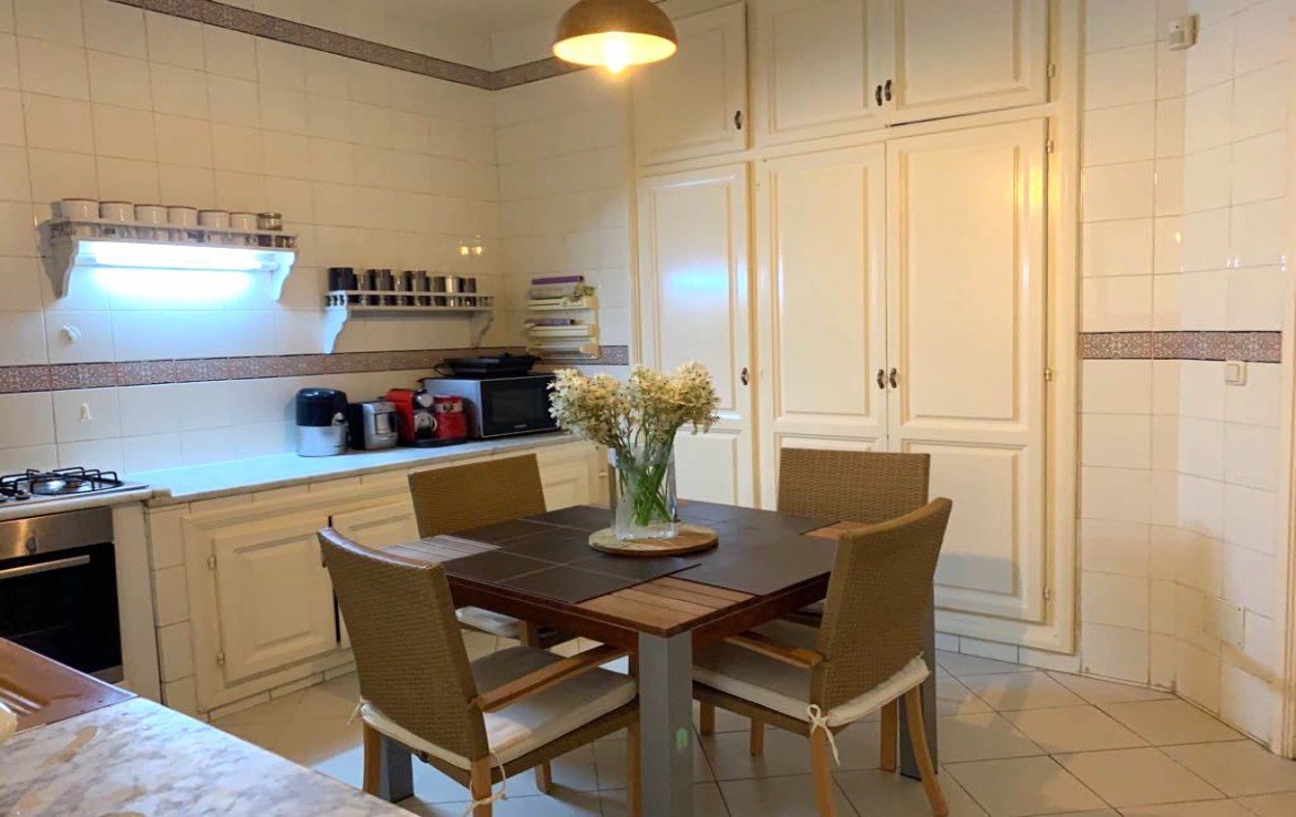Composé d’un Hall d’entrée, d’un Salon spacieux avec une grande Terrasse, d’une Cuisine avec Chambre de service et Séchoir, d’une Suite parentale avec Sdb, de 2 Chambres à couvher avec Sdb commune et d’une Sde.