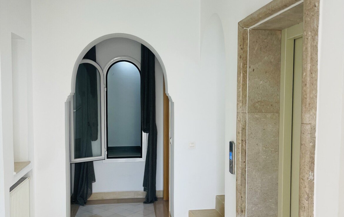 GAMMARTH MARINA : A Vendre une villa coquette de 335 m2 couverts dotée d’un Ascenseur et avec une très belle vue sur mer dégagée à partir de la Terrasse.