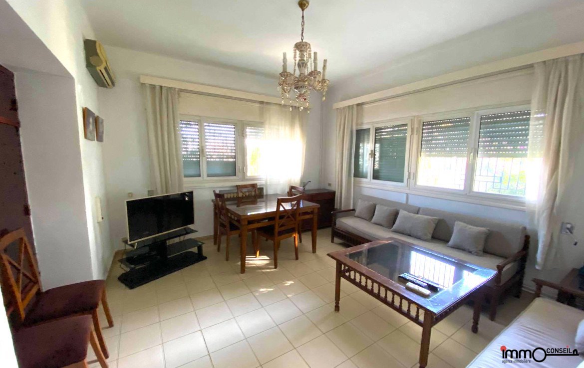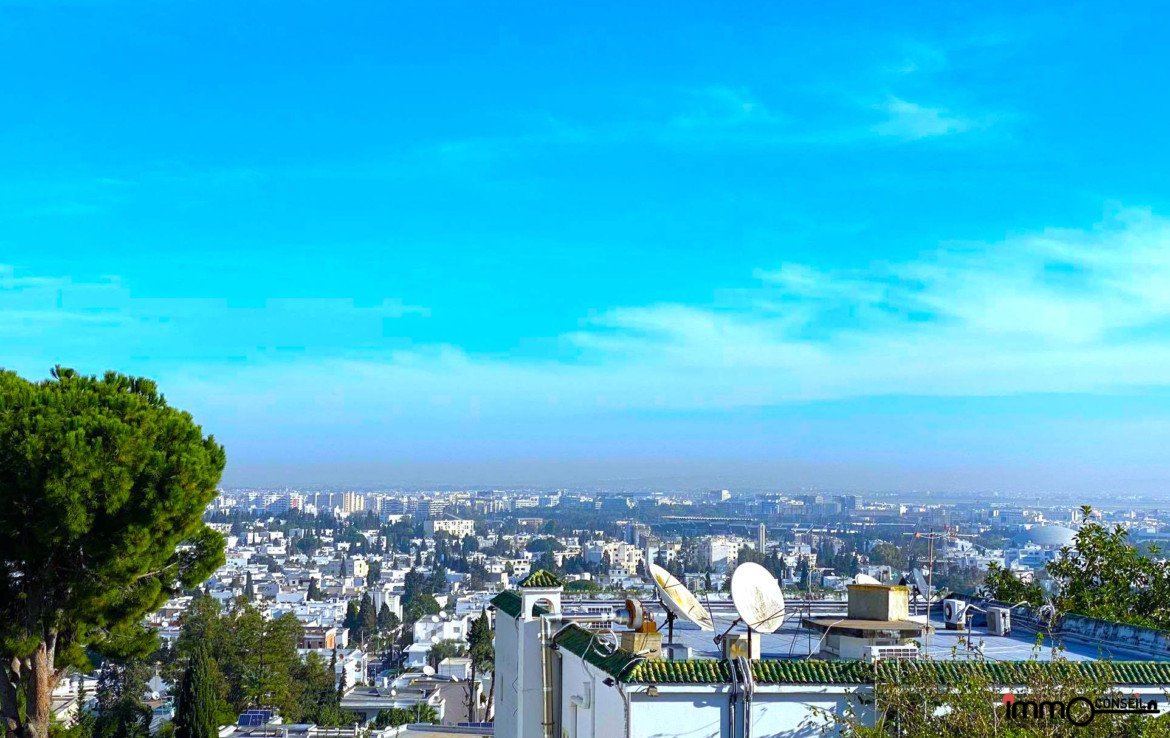 Etage : Salon-Salle à manger avec grande Terrasse et vue sur Tunis, Suite Parentale, 3 Chambres à coucher et Sdb.