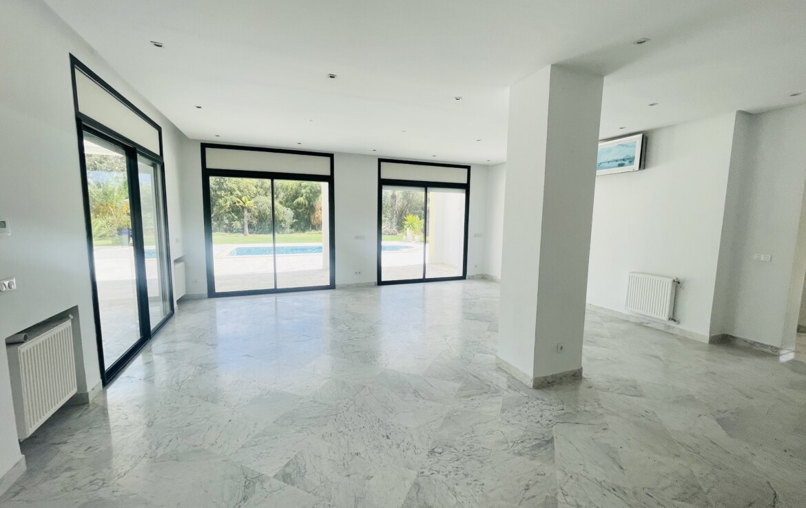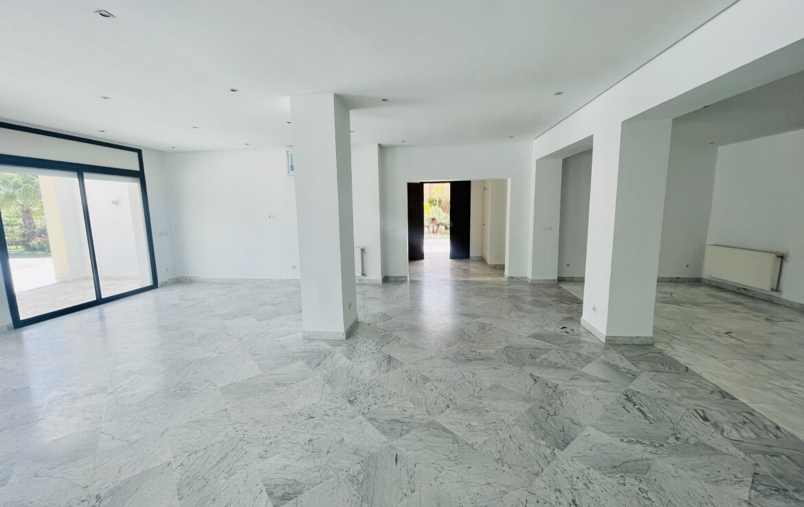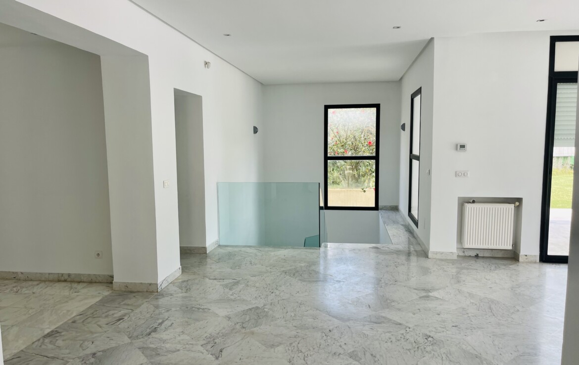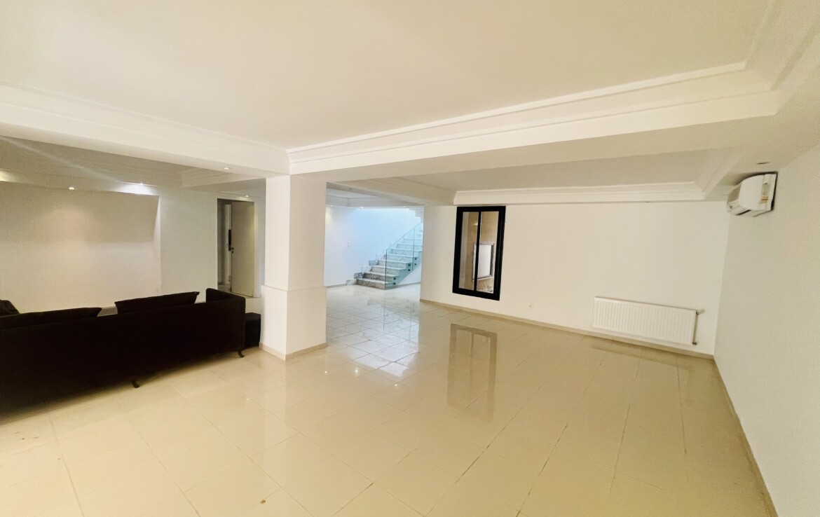 GAMMARTH GOLF : A Louer un Rdc de Villa avec Entrée indépendante et Sous-sol aménagé (lumière naturelle grâce à des cours anglaises).