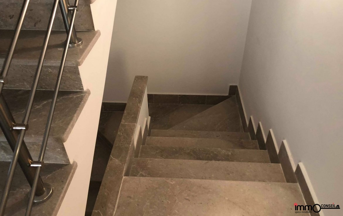 Le RDC d’une superficie de 168 m2 est composé d’un grand Salon – Salle à manger, d’un Séjour, d’une Sde, d’une Cuisine équipée et d’une Terrasse Séchoir.