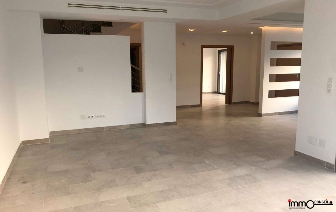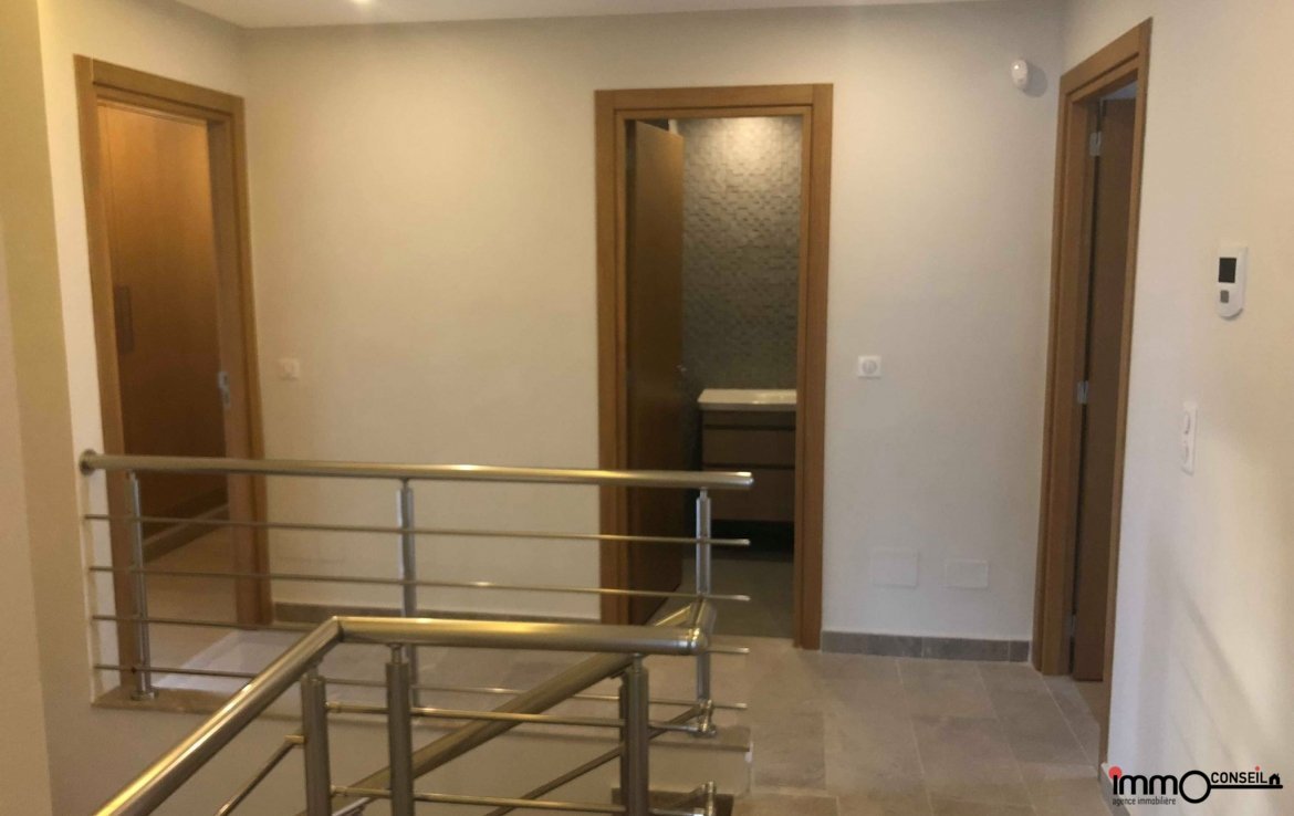 JARDINS DE CARTHAGE : A Vendre un Superbe Triplex Neuf et d’Angle d’environ 480 m2 couverts avec un beau Jardin de 75 m2 et une Entrée indépendante.