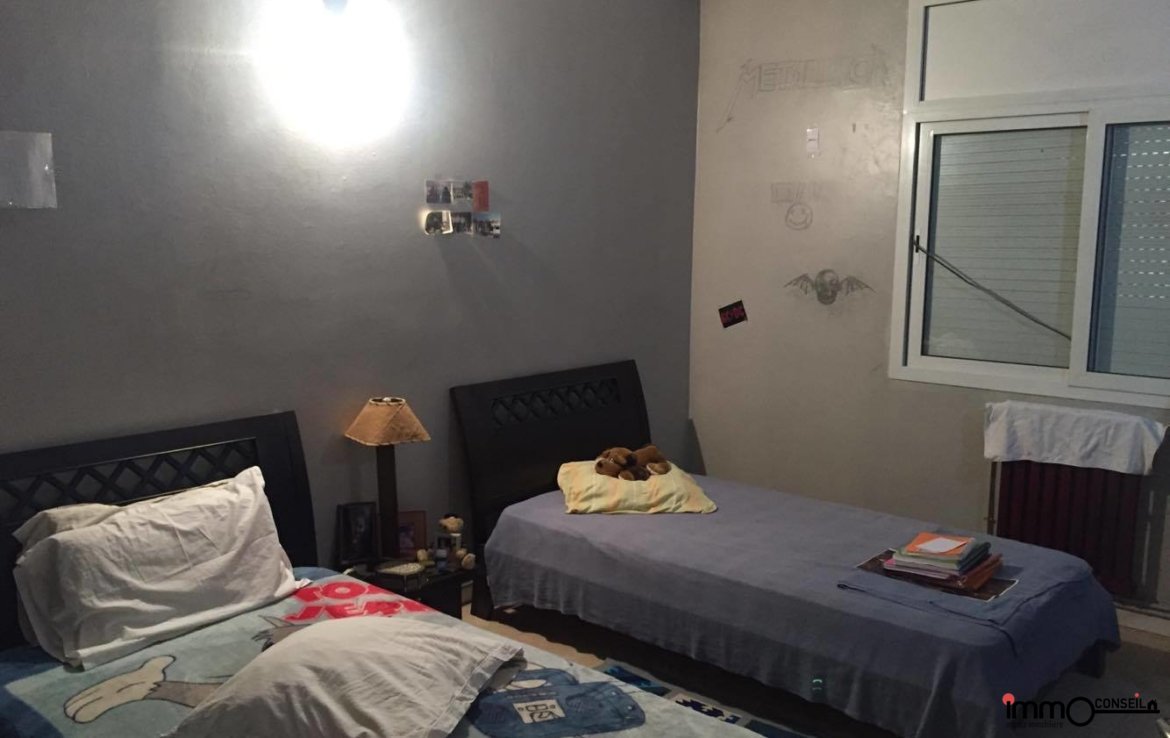 ENNASSR 2 : A VENDRE une coquette villa d’environ 200 m2 couverts, édifiée sur un Terrain de 410 m2. Composée d’un Rez de Jardin et d’un Rez de Chaussee qui sont independants. Le Rez de Jardin est a renover complètement. Le Rez de Chaussée est en bon etat et compose : d’un sejour, d’un salon, d’une cuisine équipée, de 2 Chambres a coucher avec salle d’eau commune et d’une Suite parentale avec sa salle de bains. Quartier tres calme et résidentiel. Beaucoup de potentiel.